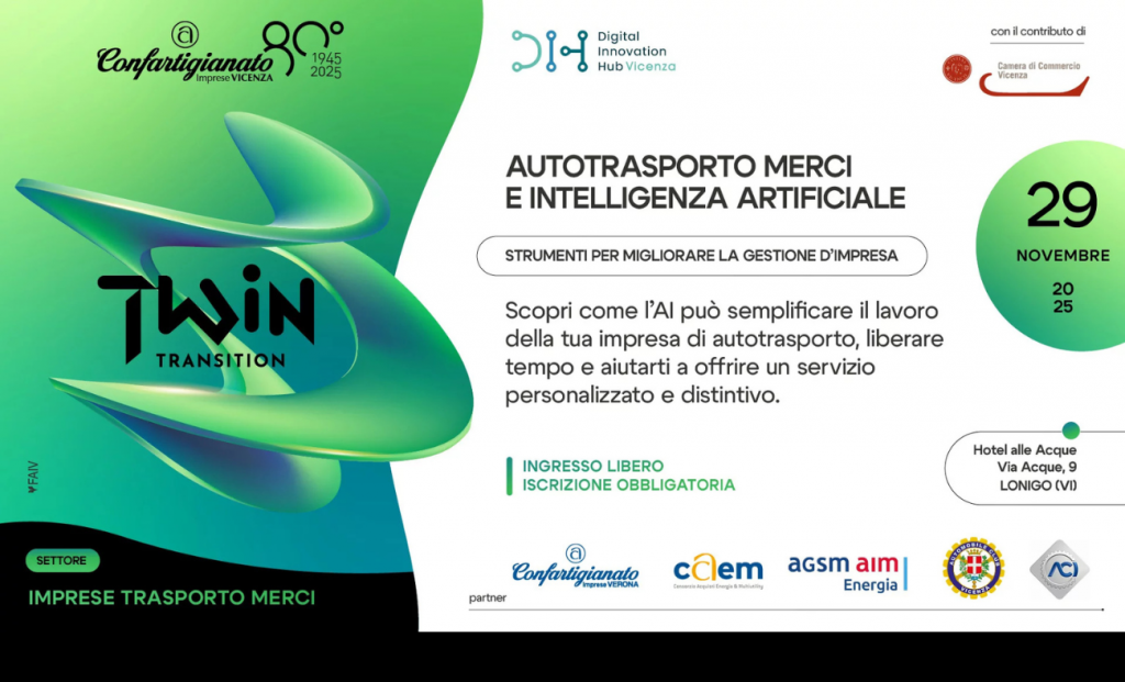 Per approfondire queste opportunità, Confartigianato Imprese Vicenza organizza un incontro dedicato ai titolari, soci e collaboratori delle imprese di autotrasporto merci: Sabato 29 novembre 2025, ore 9.00 a Lonigo – Hotel Alle Acque, Via Acque 9. Ingresso libero con iscrizione obbligatoria.